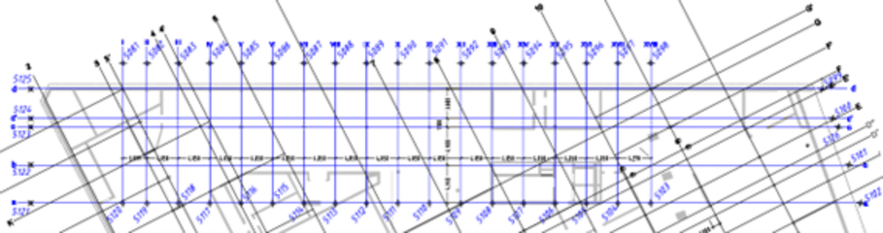 In allen Geschossen des Gebäudes wurden eine Vielzahl präziser Vermessungsarbeiten durchgeführt. Dazu gehörten die Achsabsteckung auf dem Boden und an der Deckenunterseite sowie Einzelpunktabsteckungen zur Übertragung der Konstruktion in die Örtlichkeit. Außerdem wurden millimetergenaue Meterrisse markiert und die Achsen für die Fassadenelemente abgesteckt. Zusätzlich erfolgten regelmäßige Kontrollmessungen des Rohbaus, der Einbauteile und der Fassade. Höhenkontrollen des Rohfußbodens wurden ebenfalls durchgeführt, um die Einhaltung der geplanten Höhen sicherzustellen.